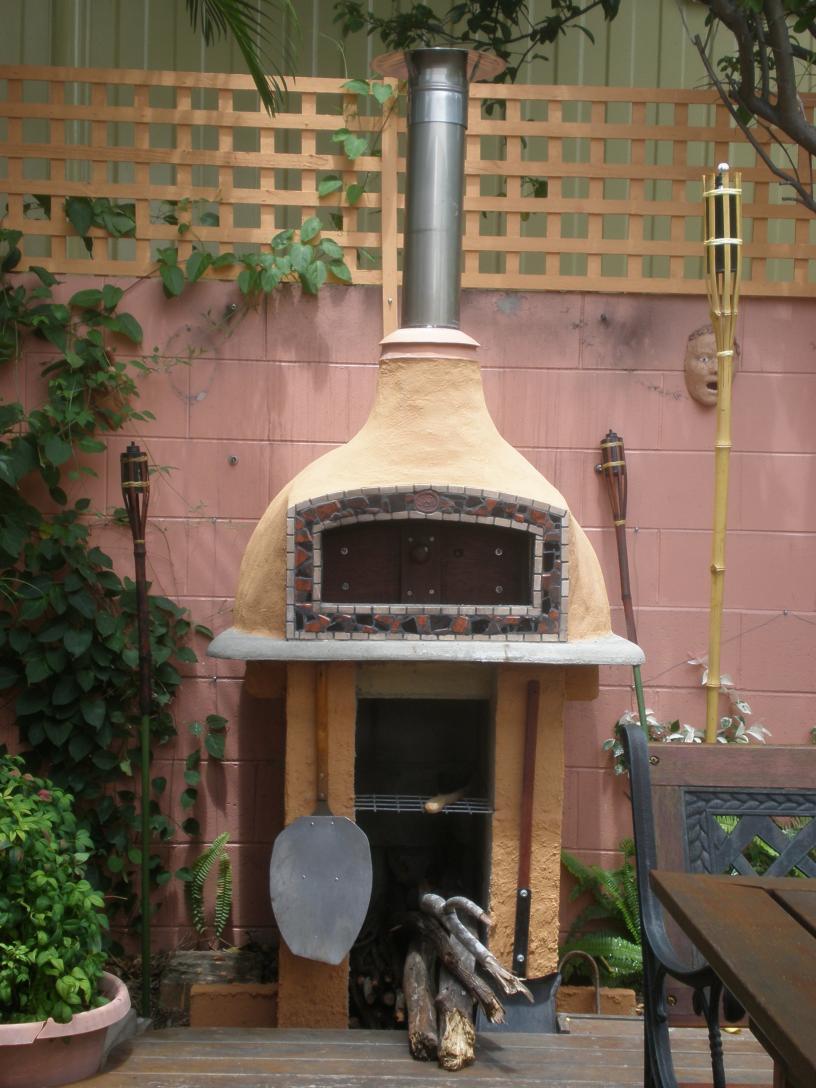 These ceramic and glass tiles present a very convenient medium to finish the dome of the oven since their flexibility allows them to repeat the shape of the dome.