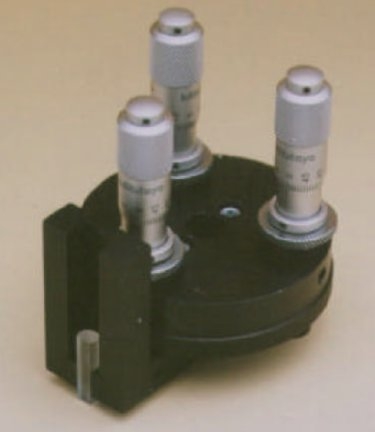 This tool known as the tripod polisher defines the polishing plane with three points.